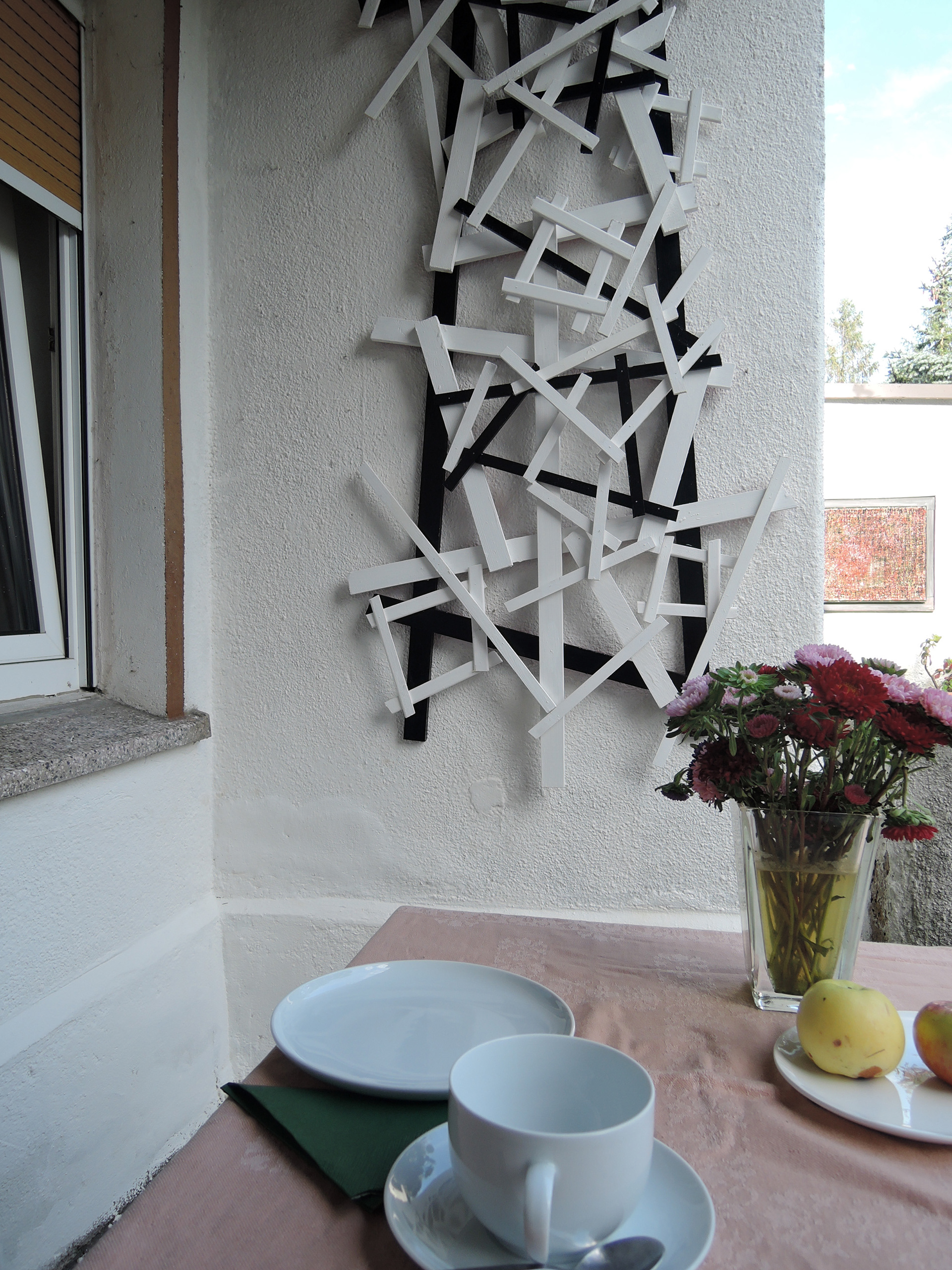 Bei Dieter Weise spielt immer wieder die Neugierde auf räumliche Konstellationen eine wesentliche Rolle. Siehe Ausdrucksmöglichkeiten mit einfachen, eingefärbten Holzleisten. In den neunziger Jahren entstanden vielfältige Skulpturen von gebrauchten Teebeuteln.